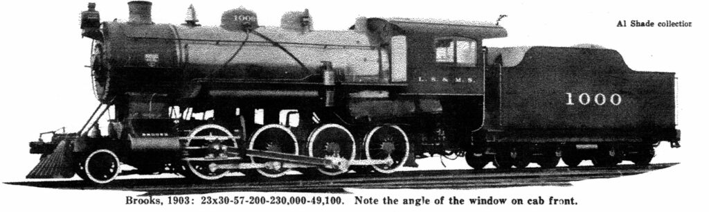 F.- Brooks built fifteen in 1899 which became class G-41. These were transferred to the L.E. & W. in 1903. Brooks built fifty more (almost all L.S. & MS. 2-8-0’s were by Brooks) in 1899-1900. These were later classed G-42 and nine were eventually sold to Norfolk Southern. Next came a group of 120 with very large cabs built in 1901-03 and later classed G-43. Fifteen were sold in 1916 to the Nickel Plate; ten more to Wheeling & Lake Erie in 1923, and twenty to St. Louis & Hannibal which resold six to K.C.M. & O. The wealthy Central always bought the latest in motive power, and the smaller midwestern roads eagerly picked up their discards. Brooks, again, built seven in 1903-04 that became class G-46a and G-46b. Sounds like Lake Shore pretty well had a monopoly on Brooks production when they and Schenectady turned out 200 2-8-0’s between 1904 and 1911. These became N.Y.C. Lines G-5 and G-6. Thirty-eight of these were rebuilt in 1912-13 to class H-5, 2-8-2 Mikados. Five others were sold to Nickel Plate and twenty-five more transferred to the Michigan Central. Brooks, turning back to an old design, produced thirty-five class G-46’s for the Lake Shore in 1909-11. In 1915-16, twenty were transferred to the Toledo & Ohio.