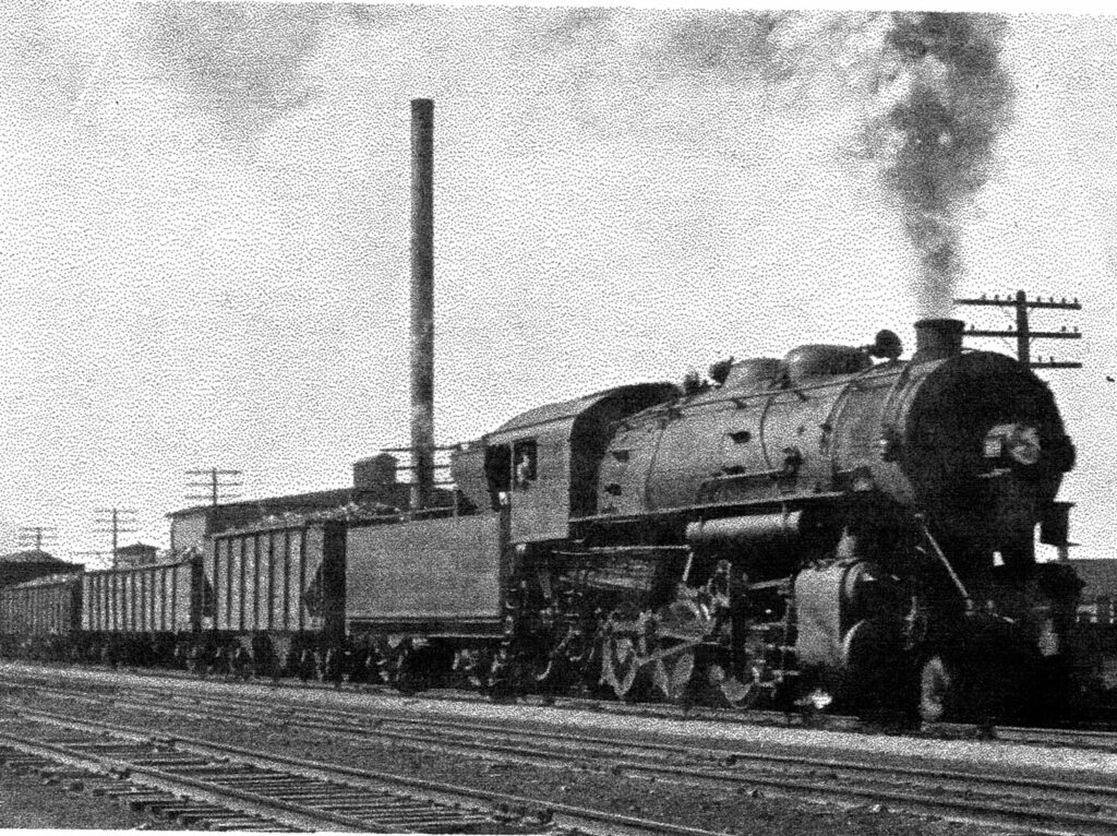 Freight locomotives, as expected, were predominantly 2-8-0’s with over 400 being built between 1899 and 1911. With these locos it was the usual story of larger size and ever increasing machine refinements. Average specifications for an 1899 Consolidation were: cylinders 201/2″ x 28″, drivers 56″, pressure 180 lbs., weight of 162,000 lbs. and tractive