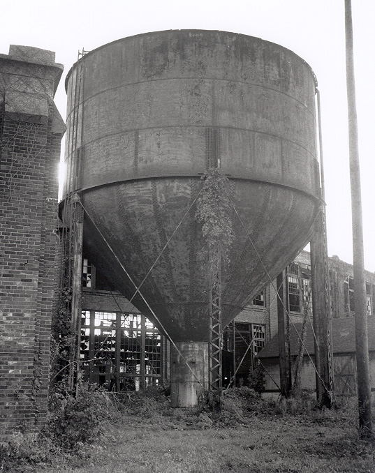 This is also a relatively modern photo (1987) of the water tank that supported the powerhouse boiler. The fan house is on the left edge of the photo.