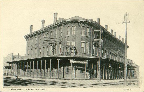 Here’s the early union passenger station at Crestline that serviced the area since 1863. In this period, the PRR was the Pittsburg, Ft Wayne & Chicago RR and the crossing road was the Big Four (Cleveland, Cincinnati, Chicago & St. Louis RR).