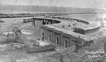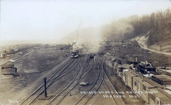 Moving away from the PRR, this is a Frisco roundhouse, Chaffee, MO. The photo was taken from a hillside just to the side of the facility.