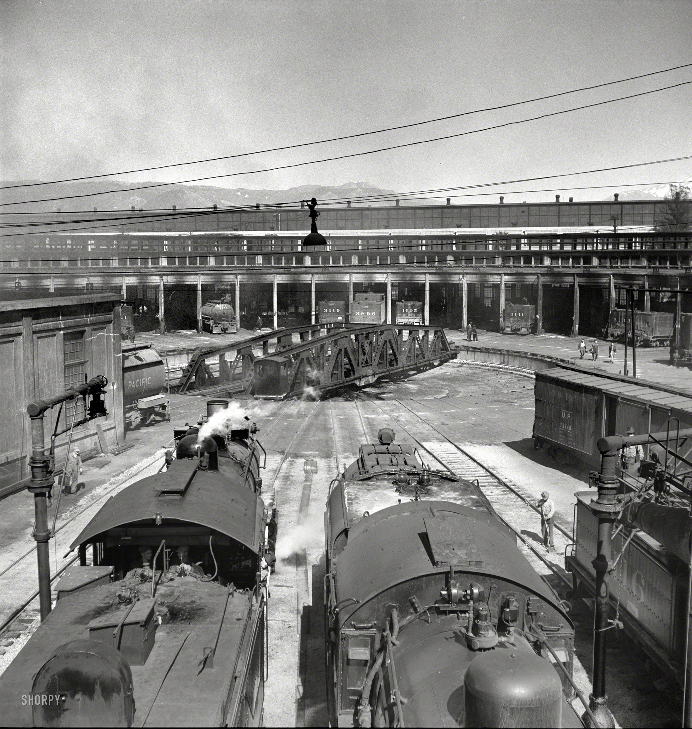 Jack Delano, another of my favorite RR photographers, took this photo of the San Bernadino Santa Fe roundhouse for the war department in 1943. All the tenders visible enough to tell have oil tanks. It looks like there are a couple of water spouts next to the locos in the foreground. I count around 10 workers in different roles in the scene.
