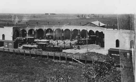 This final pic is of the Chicago, St. Paul, Minneapolis and Omaha RR (I believe) at St. James Minnesota. If my sources tell me correctly, I believe this became part of the Chicago North Western. I don’t have a date, but the loco’s all appear to Americans, so I’d guess mid to late 19th century. The roundhouse appears to be brick. There are short leads to turntable that was built just long enough for these Americans. So this facility probably was rebuilt or replaced by the early 20th century. The stall doors have a great arched look along with the windows on the side. Interestingly, the foreground platform appears to be loaded with stacked fuel wood. This was probably the woodburning version of a fueling platform.