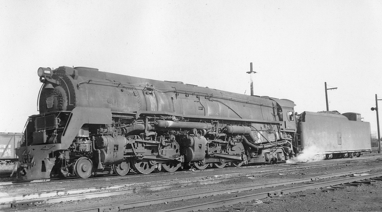 There was no caption with this pic, but I believe we’re looking at an engine facility around the early ‘50’s. I see a lot of doghouses on the tenders of the steamers. There appears to be an F unit with a radio antenna paired with another unit, and maybe an E unit in the lower right corner. There’s a pit to the left – maybe an ash pit. There appears to be a water spout mid right. And that’s a coaling tower off in the distance before the overpass. I can’t see anything that provides the owning RR, but with the eastern looking mountains along the river in the background, the doghouses on the tenders, and the radio antenna on the F unit, my first guess would be a PRR facility. Also, on a further look, the steamers appear to have Belpaire fireboxes – a dead giveaway that it’s PRR.