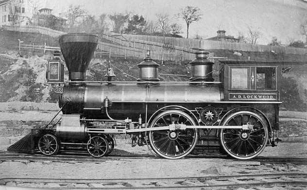 No direct info on the A.D. Lockwood. I can guess this is a Baldwin built loco because of the decorative upside-down triangle panel between the drivers. I know early Baldwins had these with “Baldwin Locomotive Works” written across the circular border of the circle inside the triangle. And, it has a cylinder below the valve box with a piston rod connected to the side rods and drivers! In this pic, it’s disconnected from its tender.