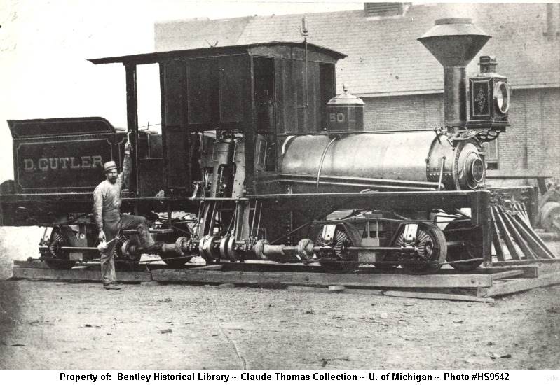 I found this pic of “D. Cutler” of the Cutler & Savidge Lumber Company, #50, a small Class A Shay. Built in 1882, it only had (2) cylinders rather than the more typical (3) for Shays.