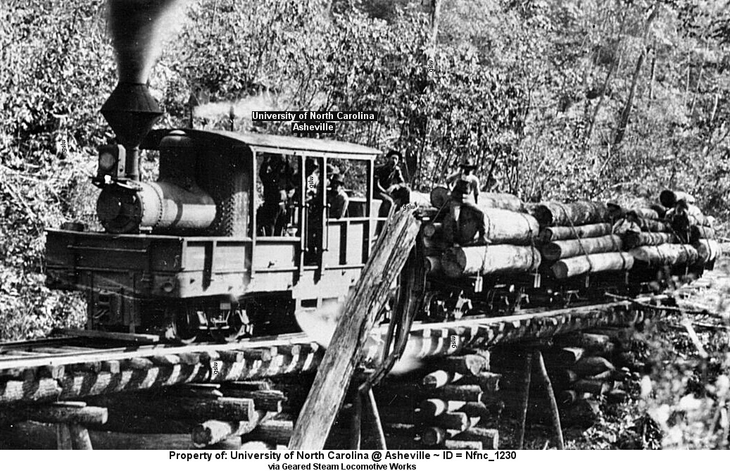 Since we visited geared locos, here’s Eberman Lumber Company’s Climax. It’s crossing MacKey Creek, McDowell Co., NC.