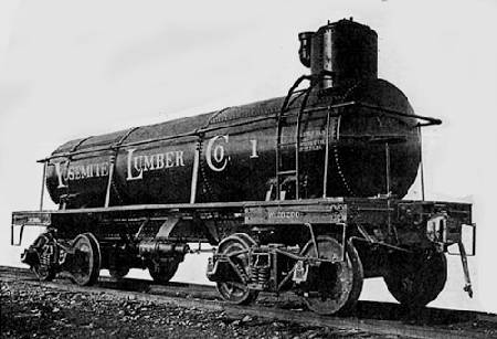 This is one of the more interesting cars built by the Seattle Car Foundry. The tank car was built for the Yosemite Lumber Company for use on a 7,800′ incline with grades up to 78%! The expansion dome had to be placed at the uphill end of the car to avoid spillage, and special flanges between the tank and the frame kept the tank from slipping out of the hold-down bands. Drawings and photos of this car may be found in the May/June 2004 issue of Narrow Gauge & Short Line Gazette.