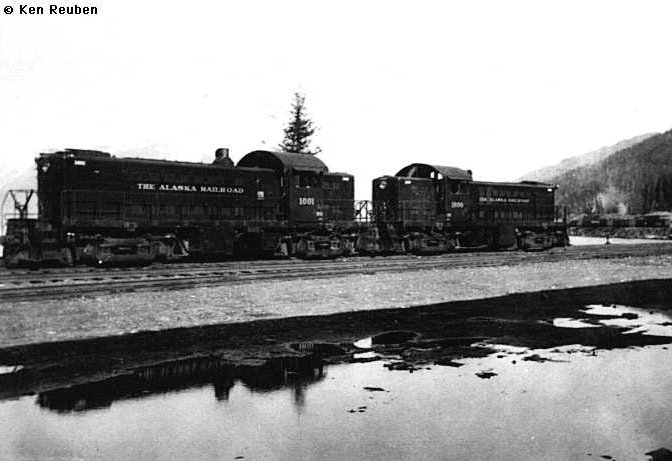 Trying to get a little closer to topic, I checked out the Alaska RR RS-1s and found this pic of #1001 and #1000 MU’d like the typical PRR units – back to back. The caption read, “Pictured is ARR RS-1 numbers 1001 and 1000. Photographer Ken Reuben writes, ‘I rode the ARR in April 1945 from Whittier to Anchorage. We were on a three day pass and due back on a Saturday. There was no train to Whittier on Saturdays, but a special was coming down with girls for a dance. Unfortunately, F.D.R. died the day before and the dance was cancelled. So we were AWOL, didn’t get back till Monday.’ Whittier, Alaska, 1944-45.”