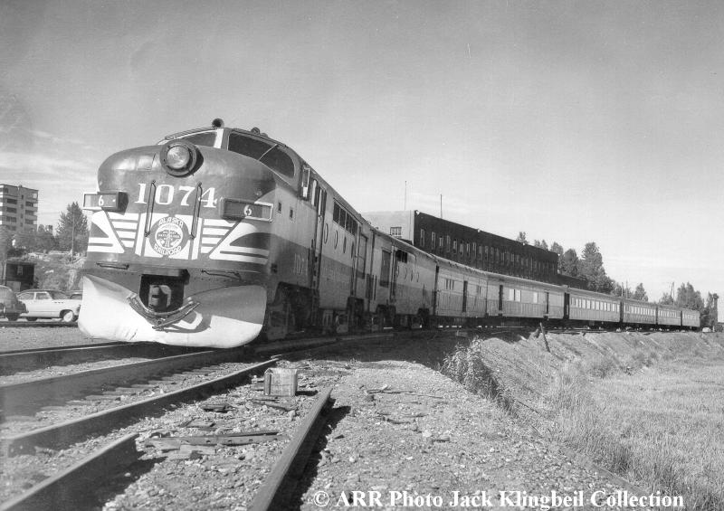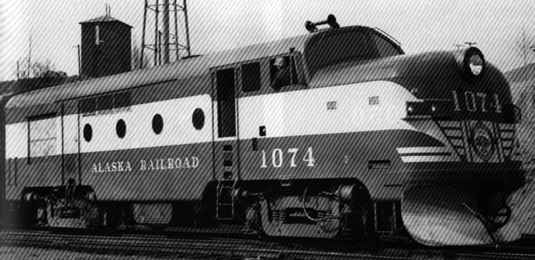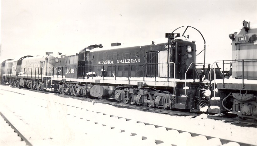 Here’s another pic of #1074 RF1: This unit started life as US Army RSD-1 #8036. Then, it became ARR RSD-1 #1024 when acquired it in 1950. It was retired 1966-67 and scrapped in 1973. This photo is of a northbound passenger train at the Anchorage Depot in 1951. Like the RS-1s, I believe steam generators could be put in the short hood (or the nose in this case) for passenger service. Another interesting question resides around MU’ing the RF-1s. If we assume they’re like the RS-1s – that’s what they originated as – then the long end is the front end. And, it seems that most RS-1s only had MU capability on the back end – the short hood end. Yet, this pic shows an A and B unit MU’ed at what would be the long hood end (front end…or is it now the back end because it’s an RF-1?). Either way, the RS-1s ran pretty equally front or back end forward, so the change to short hood forward shouldn’t be a problem for operation. And I’m sure changing the MU plug to the front end (…or – back end (??)…) also wasn’t a problem. Note also that this photo reveals that there were RF-1A and RF-1B units. #1050 also had a B unit – as a pair, they were #1050A and #1050B. I assume this is #1074A & #1074B. (For info – most of the A units were shrouded by Puget Sound and International Car. The B units were all shrouded in the ARR shops.)
