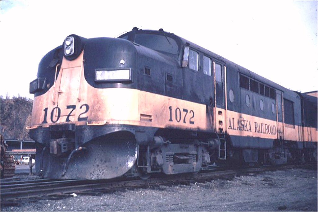 This pic caught my eye – It didn’t look like any diesel-electric I recognized. The caption listed it as Alaska Railroad (ARR) #1072, an RF-1, pic taken in 1971. At first, searching for ARR RF-1 didn’t provide much info other than there were at least three other of these RF-1 units
