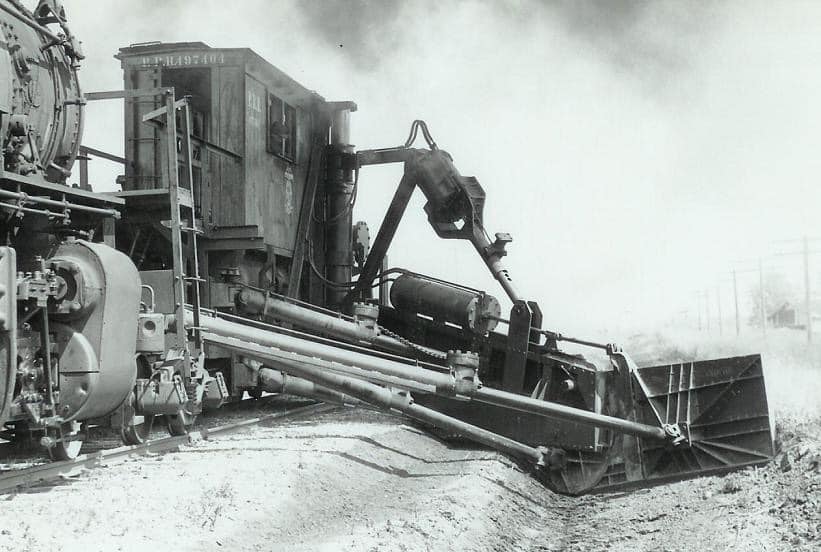 Weāve shown pics of Jordan spreaders before ā Hereās a pic of one in front of a steamer. Jordan spreaders can be used for spreading ballast, clearing ditches, or for snow removal ā great piece of equipment for around the MOW track.