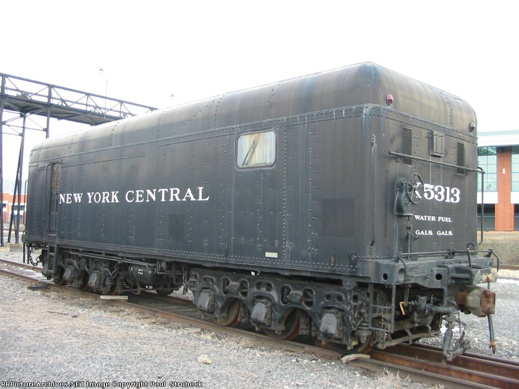 NYC #X5313 is shown as MOW equipment in this 2005 pic. This steam generator was once a tender that belonged to New York Central #5313 ā a J-1d class Hudson, 4-6-4. The engine was sold to the TH&B who later performed this conversion on the tender for MOW service. Note the door and window cut into the sides, and the new top. You get a great view of those heavy duty 3 axle trucks.