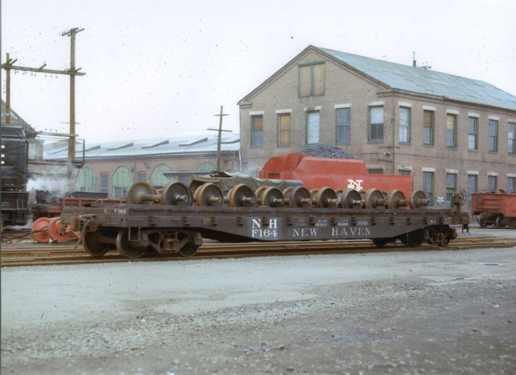 NH #F164 is a classic wheel flatcar ā pic was taken in New Haven, CT, 1967. Wheel flatcars were usually seen around the car and engine facilities where wheels were typically switched out on the RIP track.